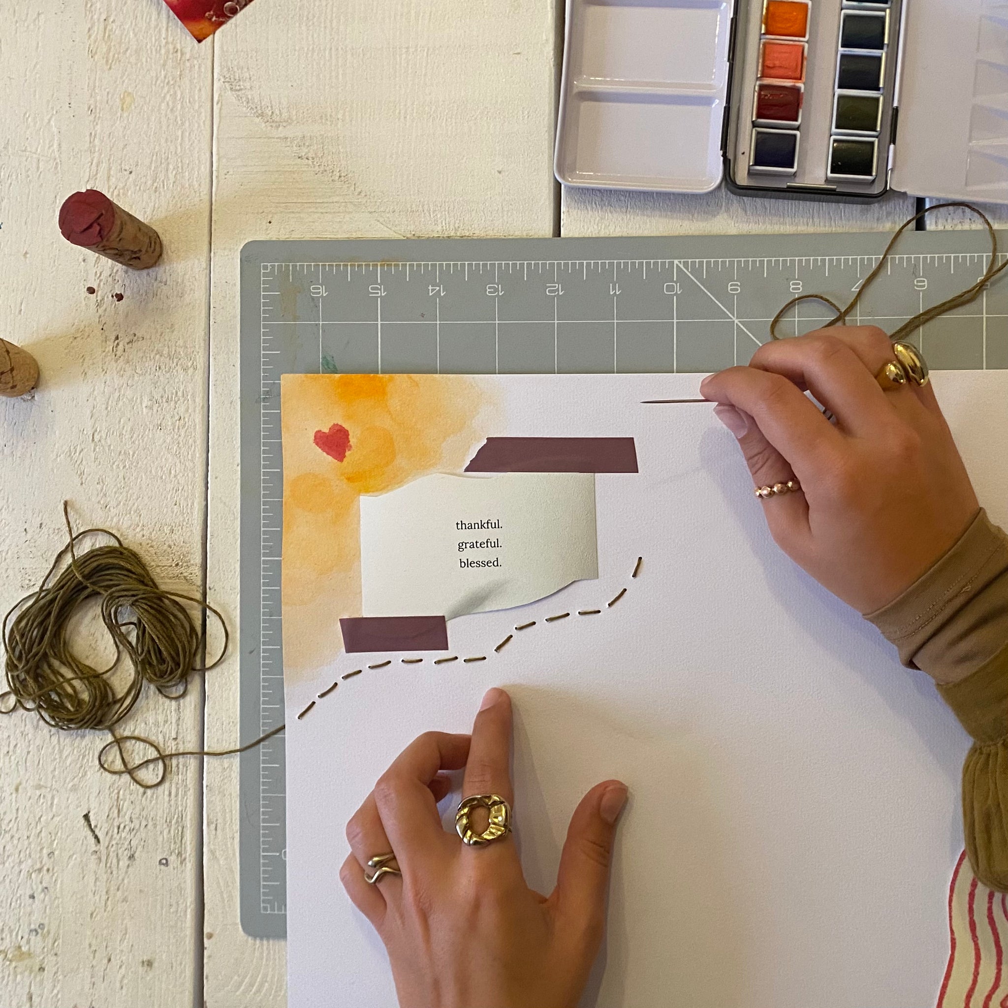 Paso a paso, tu tablero de visión toma forma a medida que trabajas con papel, texturas y elementos visuales, dejándote con una pieza hecha a mano que captura lo que quieres invitar a tu año.